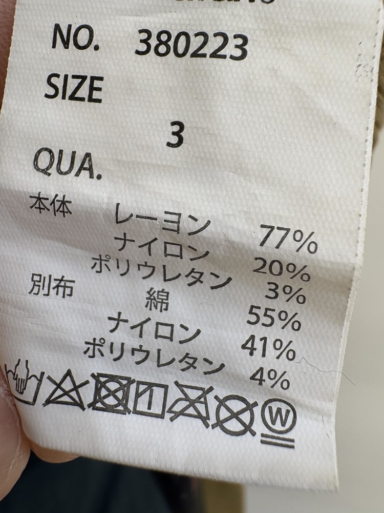 레이온 77%, 나일론 20%, 폴리우레탄 3%