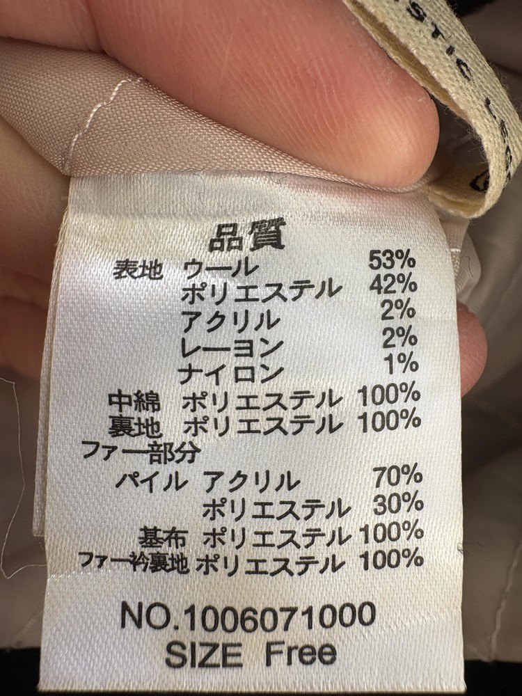 소재 : 울 53%, 폴리에스테르 42%, 아크릴 2%, 레이온 2%, 나일론 1%